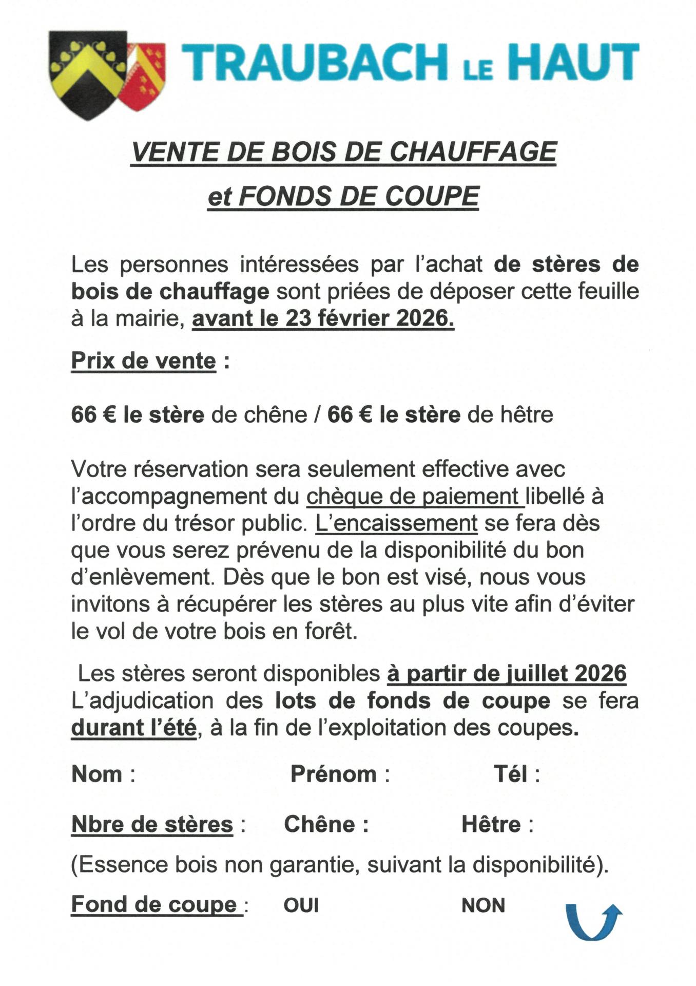 (accompagné du chèque si commande de stères de bois)